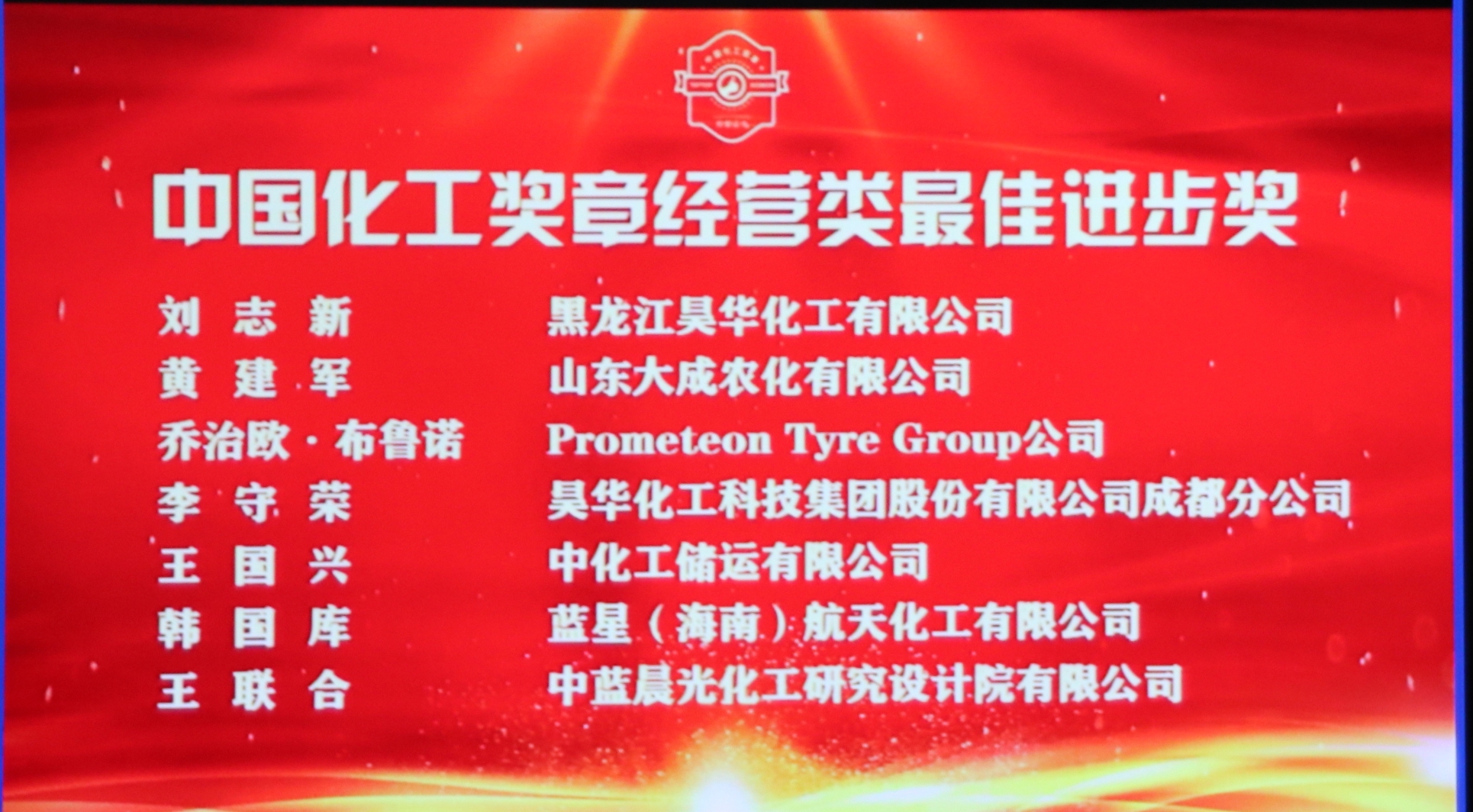 ??? 會議舉行2020年“中國化工獎?wù)隆鳖C獎儀式。2020年“中國化工獎?wù)隆薄?jīng)營管理類共評選出最佳業(yè)績獎、最佳進(jìn)步獎和管理類三類獎項。根據(jù)2019年度財務(wù)決算審計報告,且凈利潤增長率高于細(xì)分行業(yè)對標(biāo)企業(yè)60分值評選標(biāo)準(zhǔn),我公司獲得經(jīng)營類最佳進(jìn)步企業(yè)(及負(fù)責(zé)人)獎。
