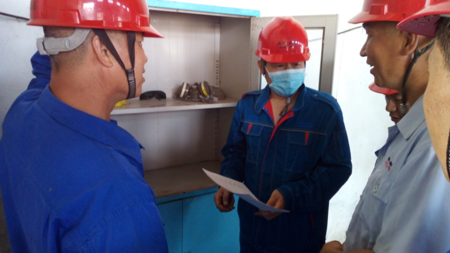 ??? 8月3 日,劉安平同志來到我公司,對氯堿車間、聚氯乙烯車間、熱電車間等部門進行安全生產(chǎn)現(xiàn)場管理和內(nèi)業(yè)資料檢查指導(dǎo),幫助梳理安全環(huán)保和設(shè)備、電氣、儀表、工藝、?;饭芾淼确矫娲嬖诘牟蛔?,按照《中央化工企業(yè)安全生產(chǎn)風(fēng)險年度評估工作方案(草案)》要求,對照《安全生產(chǎn)風(fēng)險評估表》的各項評分內(nèi)容與各個專業(yè)人員通過查現(xiàn)場、查資料等方式發(fā)現(xiàn)不足實施整改。8月8日,在滂沱大雨中,劉安平同志不顧聚氯乙烯車間陪同人員勸阻冒雨到合成轉(zhuǎn)化二樓平臺檢查,全身淋濕的情況下堅持完成檢查工作,敬業(yè)精神讓人感動。