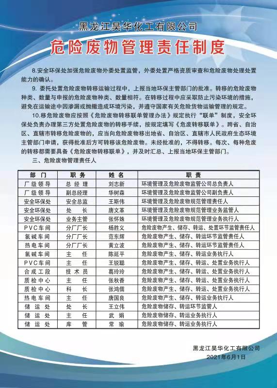 黑龍江昊華化工有限公司危險(xiǎn)廢物管理責(zé)任制度